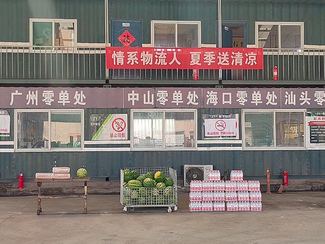 座談交流結束後,領導們向在高溫肆虐之下辛勤工作、爲物流事業做出貢獻的振宇物流人表達感謝和敬意,囑咐大家在完成工作的同時,要做好防暑降溫工作,並(bìng)爲大家送上瞭(le)西瓜、礦泉水、毛巾等消暑物品,給辛苦的工作人員帶去一絲清涼怡人。