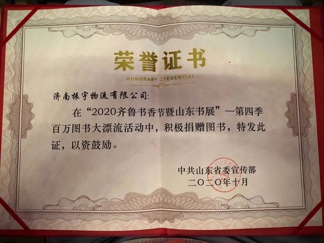 發(fā)布者:振宇物流 發(fā)布時間(jiān):2020-10-26 09:01:48        “百萬圖書大漂流”第四季是由中共山東省委宣傳部主辦、山東廣播電視台承辦、濟南市物流發展促進會協辦的公益捐贈活動。自2017年以來,已成功舉辦三季,建立瞭二十三所鄉村閱覽室,近萬名鄉村孩子,在該活動中感受到閱讀的力量。2020年,百萬圖書大漂流第四季再度起航!讓更多的鄉村孩子開(kāi)闊視野 ,爲他們帶(dài)去快樂和希望。
