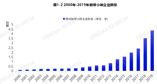在政策的支持下,中小企業蓬勃發(fā)展,新增企業數量加速增長(zhǎng)。(如圖1-2, 1-3)。
