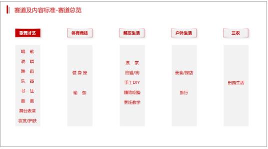 根據京東推出的主播招募政策,面向歌舞才藝、體育競技、解壓生活、戶外生活、三農五個大賽道下的17個細分賽道招募内容型主播。從政策細則來看,京東對每個細分賽道都做瞭(le)具體的“内容标準”要求,包括直播場(chǎng)景、音畫質量、主播狀态、直播内容等等。