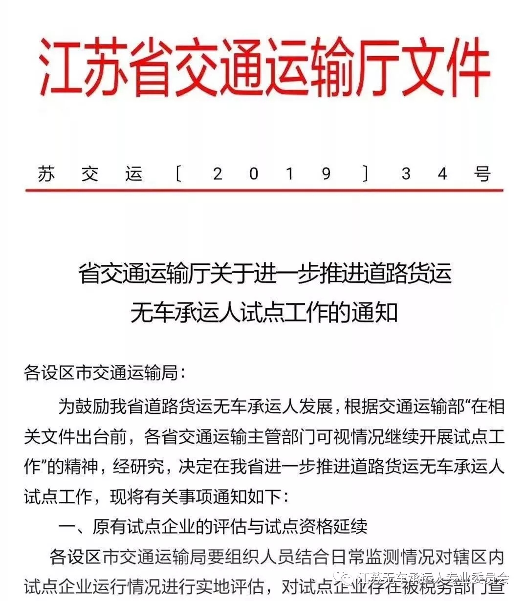 濟南物流公司:重磅!關於無車承運試點 江蘇省交通廳發文